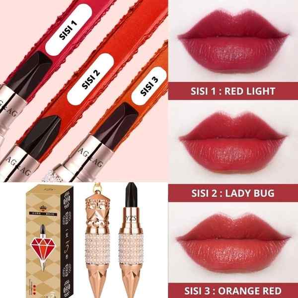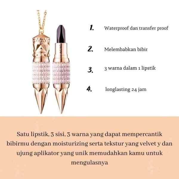 • Praktis, formula inovatif terbaru 3 Warna Dalam 1 Lipstik
